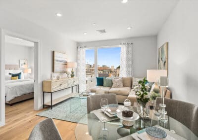 Bathed in natural light and offering striking city views, The Mezz offers open concept, one-and two-bedroom designs plus two unique designs: a two-bath studio and a one-bedroom, two-bath with a den. With these many choices, The Mezz really is the buzz of South Boston.
